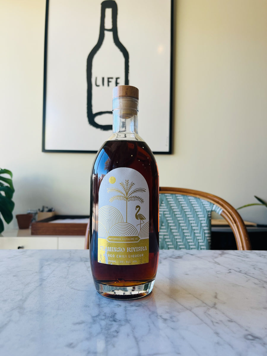 A liquid Mexican vacation! Leslie, the matriarch of Matchbook Distiling, was inspired to create this fruity spicy liqueur by a Yucatán adventure and her encounter with some fateful mango-Tajín palletas: