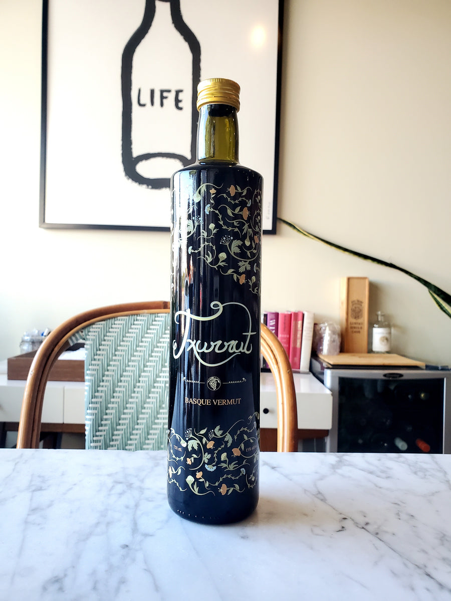 In restaurants throughout the Basque Country, a weekend meal begins with a ceremonial vermouth service. Decanters of vermouth are presented on a tray with ice, sparkling water, olives, wedges of cut citrus, and two small bitters bottles: one full of Campari and the other filled with London Dry Gin. Each guest dictates their preferred garnish and ingredients, which the waiter then serves tableside. Made with a base of local Txakolina wine steeped with about twenty regional herbs and spices, Txurrut is an excellent summer sipping vermouth.