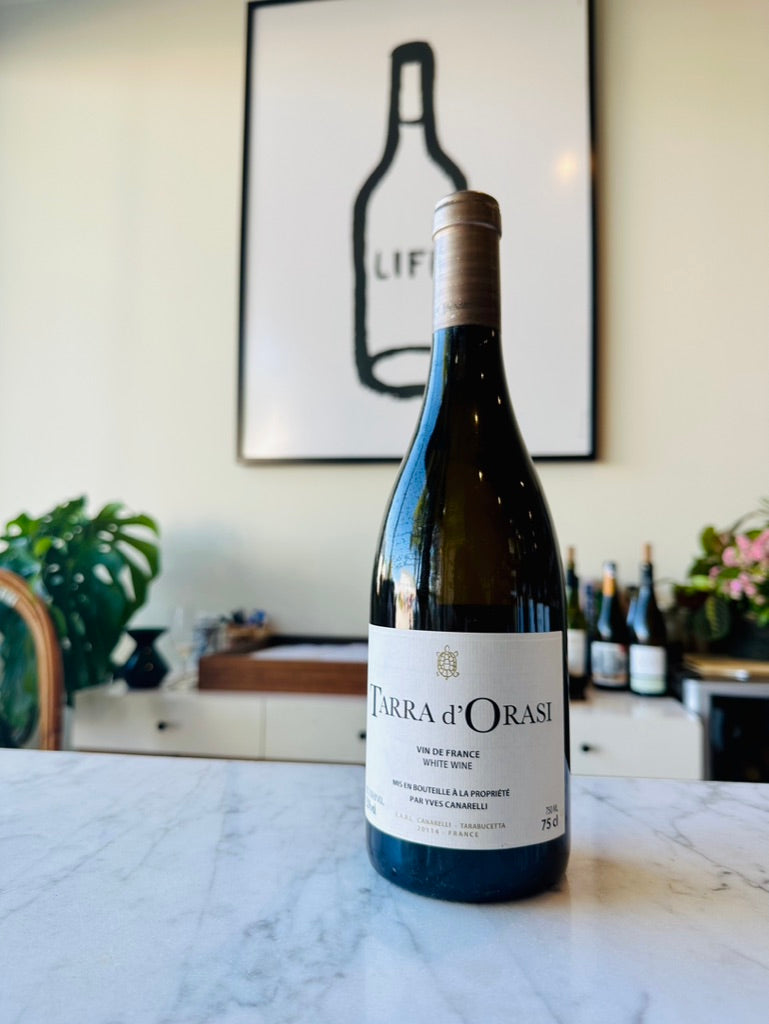 The Tarra d'Orasi Blanc is a field blend from 140 years old pre-phylloxera, known for its rarity and unique characteristics. This wine has an intense flavor that embodies the true spirit of Corsica but is also refined and well-balanced. Its powerful palate boasts mineral tones, citrus fruits, bruised apple skins, and white flowers, and it continues to reveal new elements the longer it's open. This wine is a testament to the greatness of Corsica and its exceptional winemakers. -Kimberly