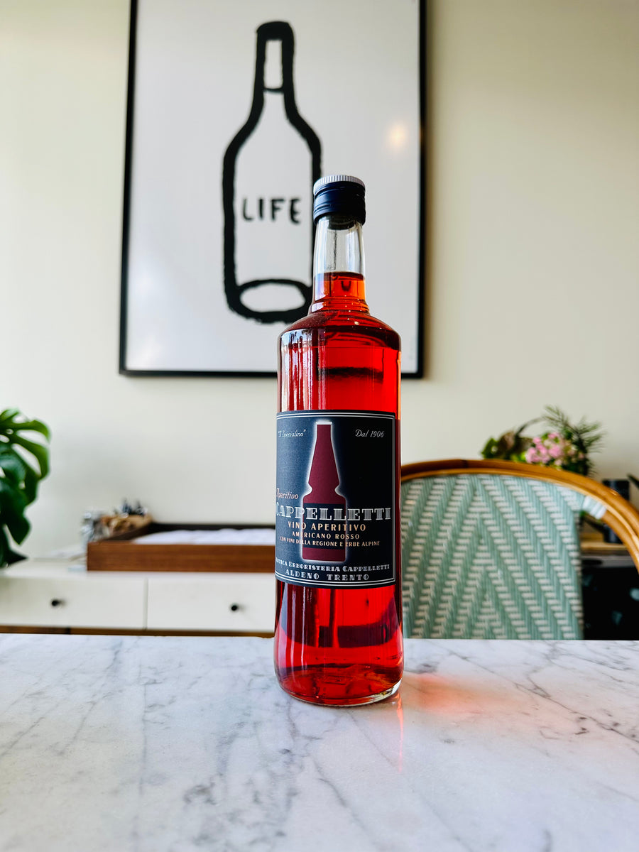 First established in 1909 in Trento, the Cappelletti family still adheres to local traditions and recipes. Unlike its larger commercial rivals who use artificial food dye like red 40, Cappelletti uses natural carmine coloring to achieve its crimson red hue. It’s a little lighter than Campari, with more citrus on the nose. It can actually substitute for either Aperol or Campari in a Spritz or a Negroni. Perfect with soda on the rocks before a meal or during aperitivo hour!